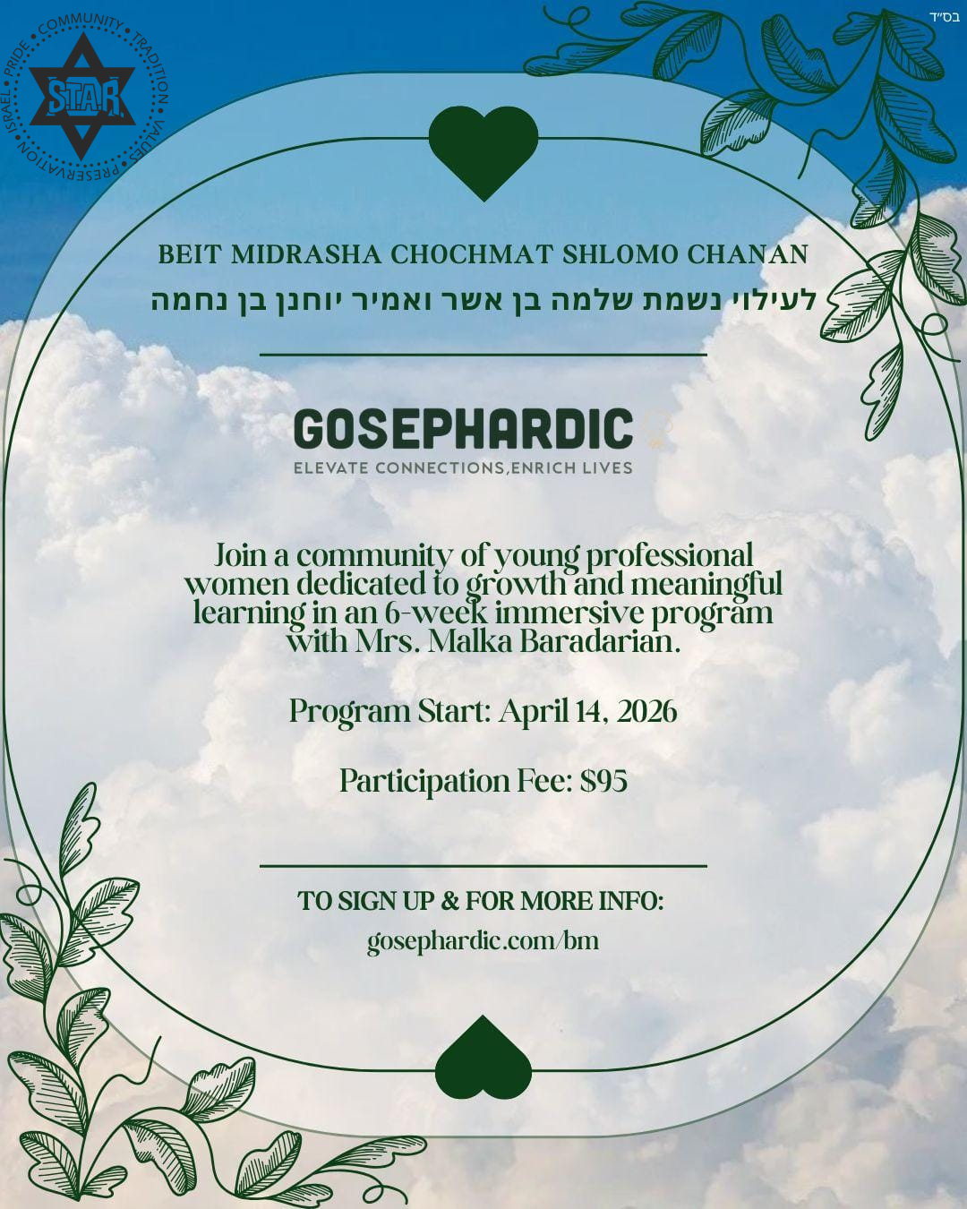 Join a community of young professional women on a journey of growth and connection with Mrs. Malka Baradarian