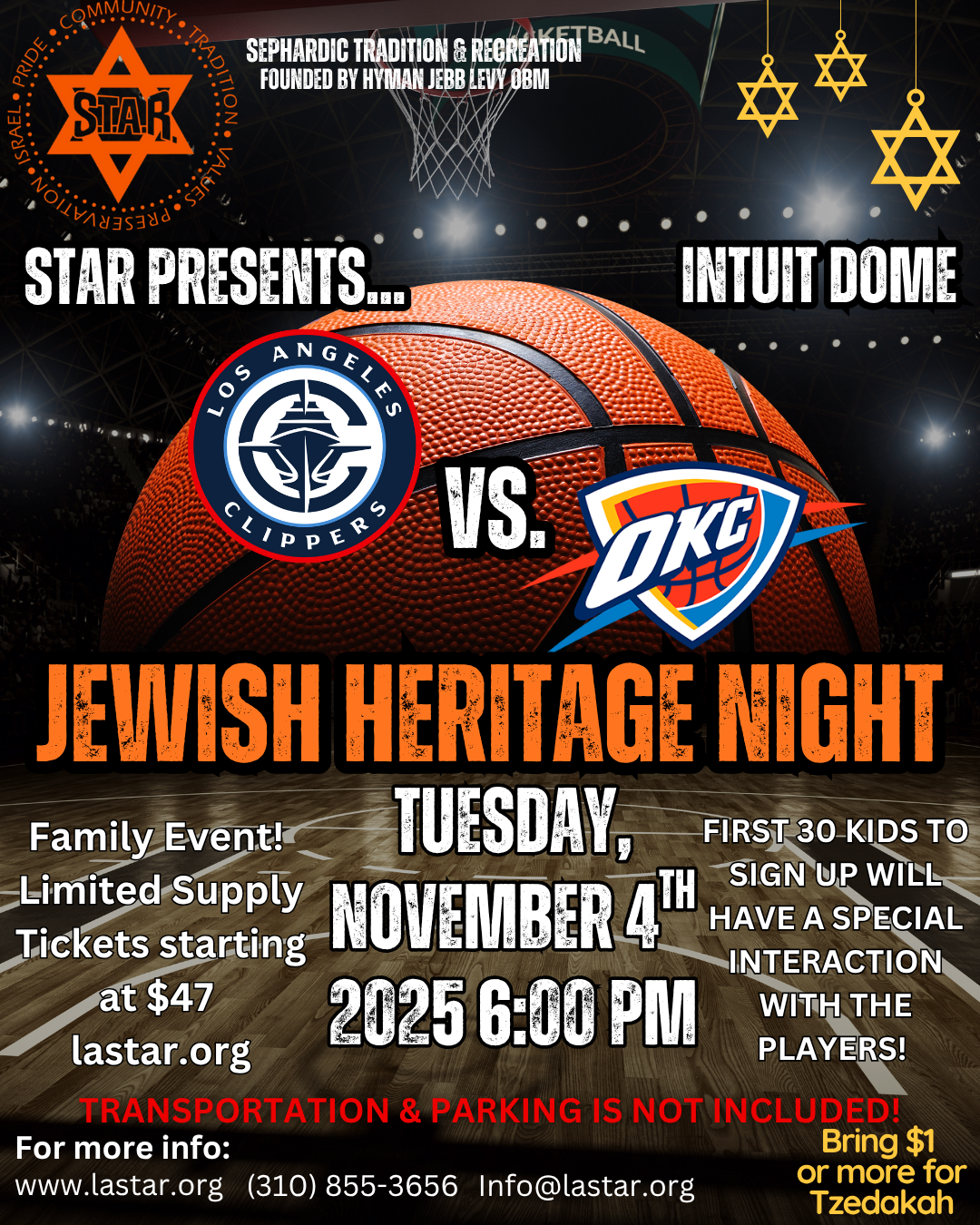 For more information call (310) 855-3656 or email: rabbi@lastar.org