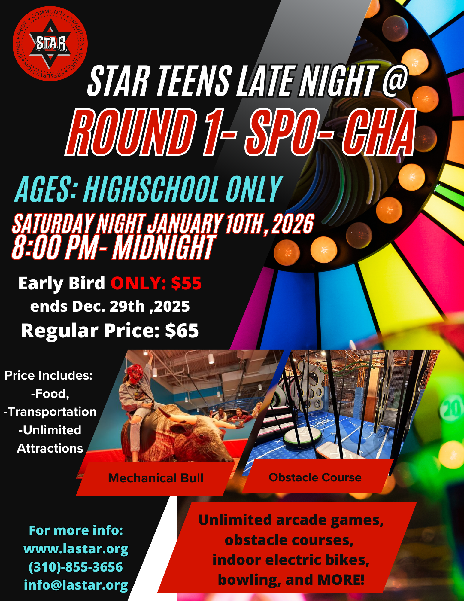 For more information call (310) 855-3656 or email: rabbi@lastar.org